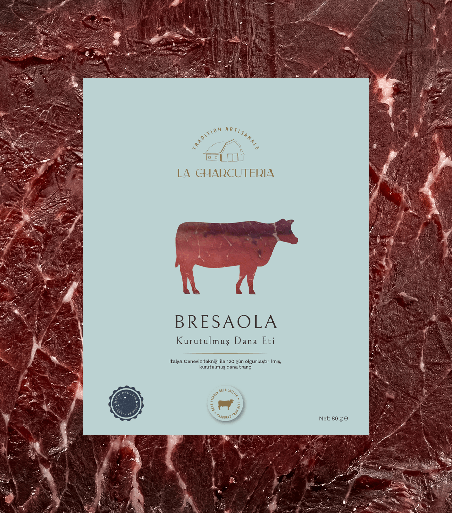 Bresaola Valtellina, dana nuar etinin baharat ve meyve aromalarıyla marine edilip, Isı uygulanmadan ve zamana yayılan bir olgunlaşma süreciyle hazırlanır. Bu süreç; etin dokusunu inceltir, aromasını berraklaştırır ve tat profilini dengeler. İnce kesimiyle hafif, temiz ve rafine bir karakter sunar.